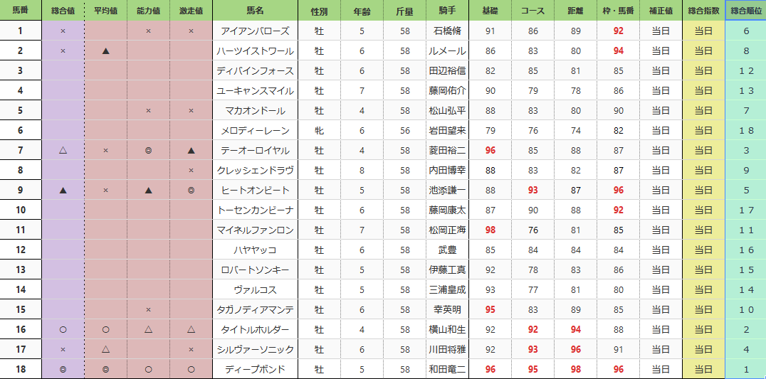 あとは、馬場が問題でしょうか。重馬場はあまり有利ではなさそう。