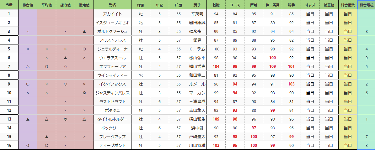 なお、このBlogでの予想は先に記載しましたが、前日のデータベース等を使用しており、